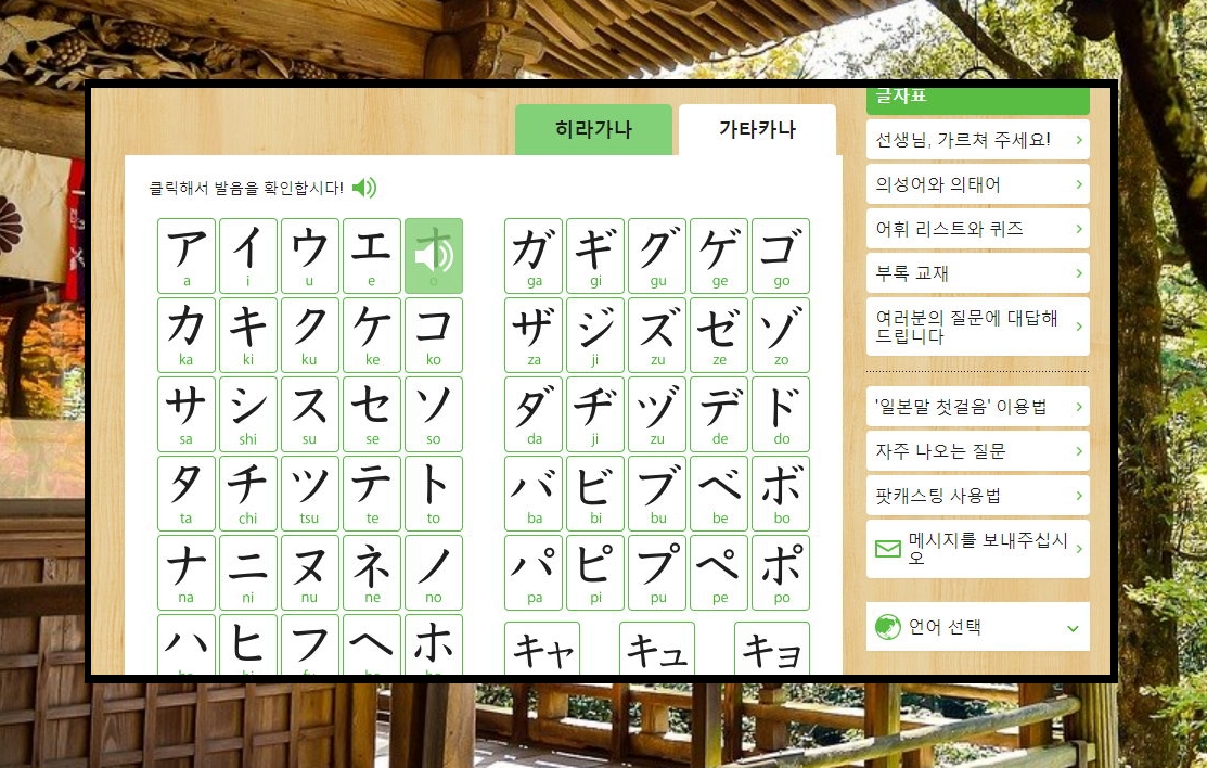 일본어를 처음 배울 때 도움이 되는 히라가나 가타카나 표를 인터넷으로 이용해 보았습니다. 언어를 배울 때에는 따라 읽기가 매우 중요합니다. 머리로만 알고 있으면 필요할 때 사용하기가 어려워요. 온 몸을 이용해서 배워야 더 잘 기억이 난답니다.