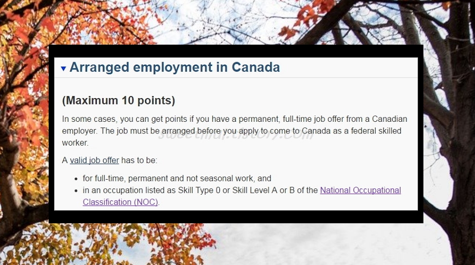 캐나다 취업확정/잡오퍼 있는 경우 : 5점
