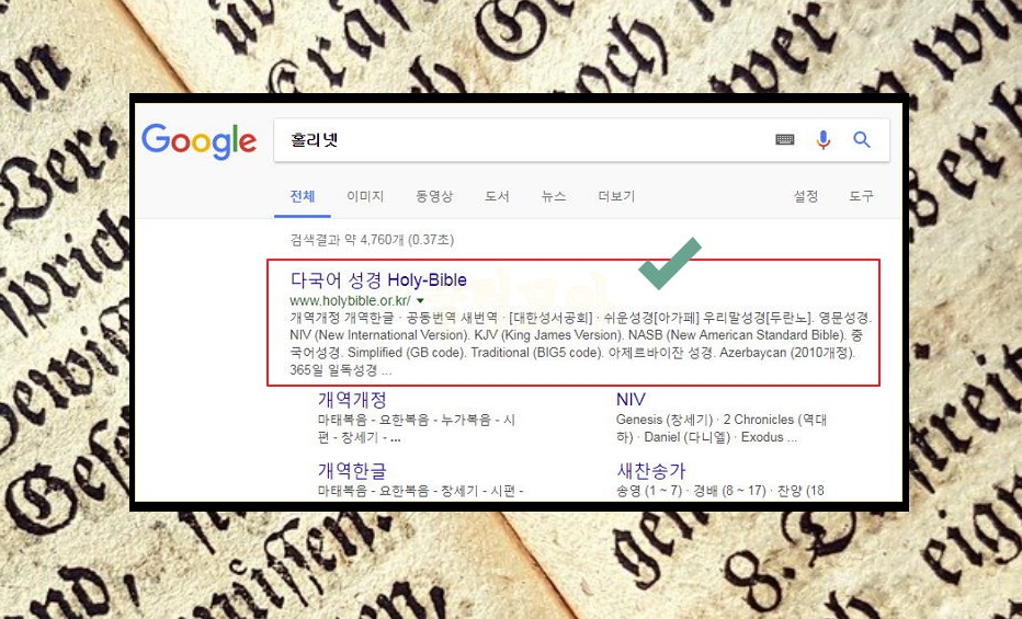 인명이나 성스러운 단어와 같이 알기 어려운 것에 대한 정보를 제공해 주기 때문에 성경을 읽기를 수월하게 해주기 때문입니다. 이번 시간에는 영어로 된 성경을 효과적으로 읽는법에 대해 알려드리려고 해요. 비용 부담 전혀 없는 무료 서비스이니 안심하고 마음껏 이용해 보세요.