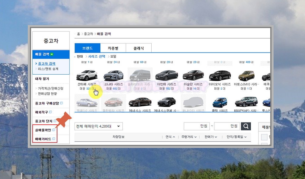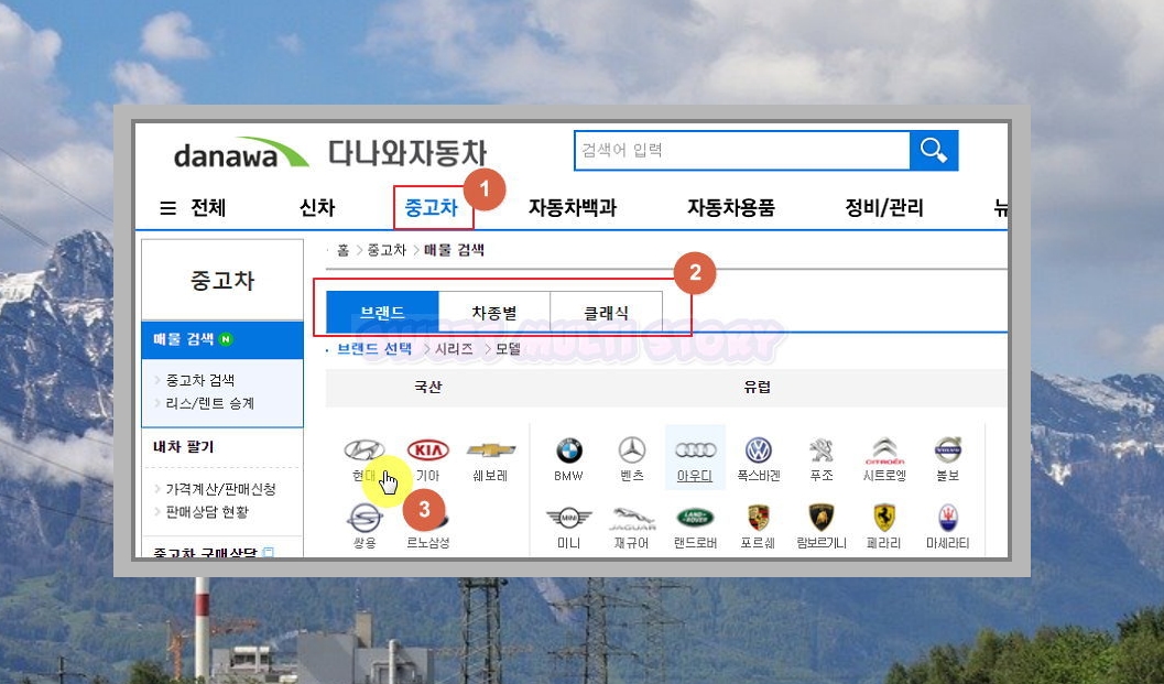 ▲ 메뉴에서 중고차 클릭