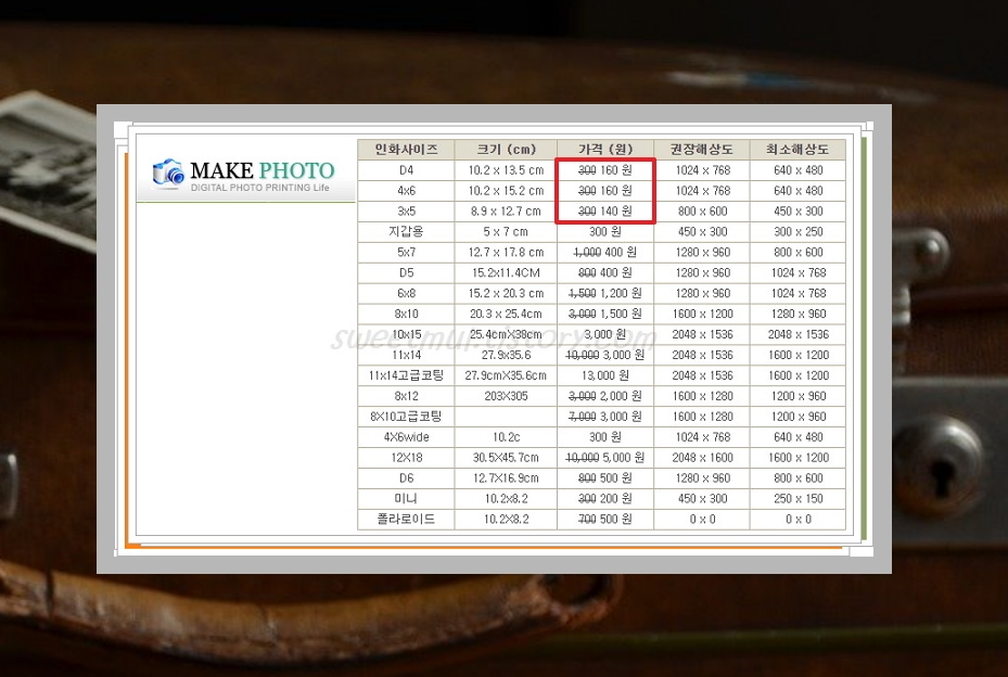 몇가지 인화사이즈를 가지고 앞서 알려드린 것과 비교를 해보았는데요.