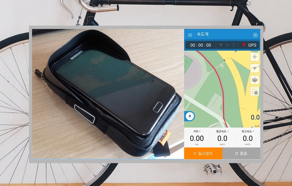 자전거 핸들 중앙에 붙일 수 있는 스마트폰 지갑인데요. 요즘에는 스마트폰 어플을 이용하여 길찾기나 속도체크를 할 수 있답니다. 자전거 전용도로 위주로 길을 안내해주기 때문에 유용한데요. 자전거 앞에 설치하면 네비게이션 보기 편합니다. 방수도 되기 때문에 비올 때도 상관 없어요.