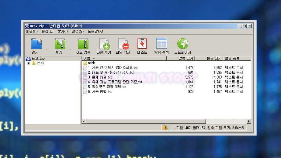 ▲ 다운로드 받은 파일은 mzk 프로그램이 들어있는 압축 파일입니다.