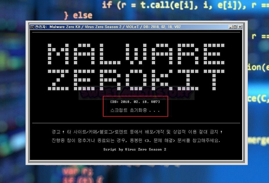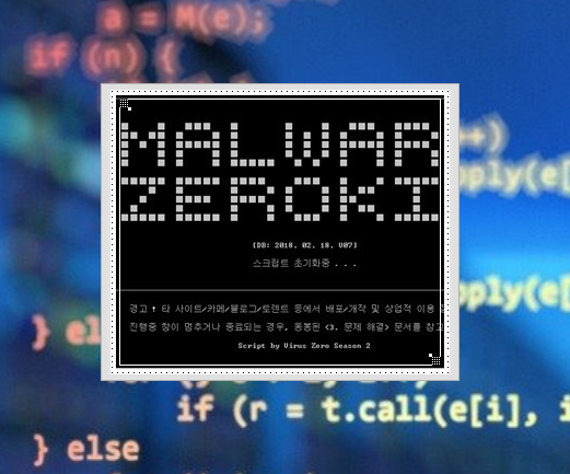 ▲ mzk 실행화면 입니다. 다운로드 받은 버전은 2018년 2월 18일 DB로 최신이라고 할 수 있습니다. 그만큼 유행하는 악성코드에 대해 대응하기 좋은데요. '스크립트 초기화중'이라는 문구가 사라질 때까지 기다려 주세요.