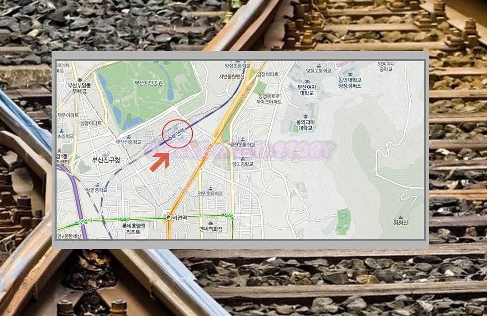 부산에 살고 계시는 분은 잘 아시겠지만, 부전역은 2곳이 있습니다. 동그라미를 표시한 곳은 기차역이고, 오른편에 있는 것은 지하철역인데요. 기차역에서는 신해운대, 목포, 서울, 동대구, 포항, 순천, 청량리, 정동진 등을 이어주는 경부선, 경전선, 동해선, 중앙선, 영동선이 운행되고 있습니다.