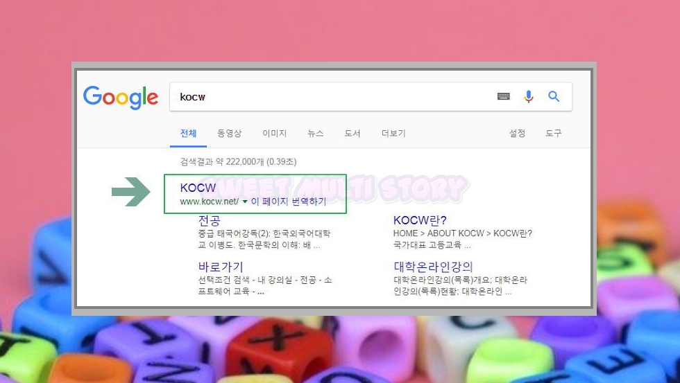 KOCW는 국가대표 고등교육 교수학습자료 공동활용 서비스를 말하는데요. 우수한 이러닝 콘텐츠와 강의 자료를 무료로 이용할 수 있는 사이트입니다. 영어공부를 하신다면 회화, 문법, 기초 등 다양한 것을 배우고 싶으실 텐데요. 목적에 따라 다양한 무료 강의가 정말 많습니다.