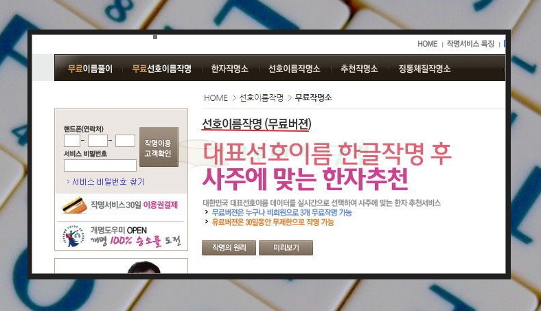 2) 작명 사이트 접속