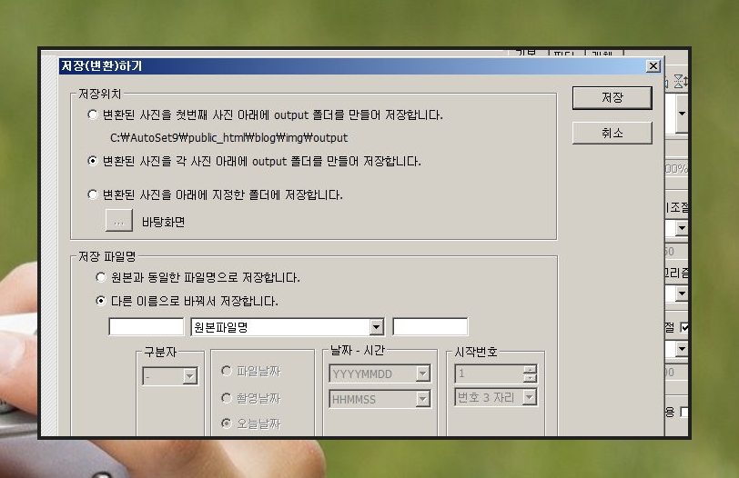 원본과 다른 이름으로 바꿔서 저장해야 원본 사진을 보존할 수 있습니다.