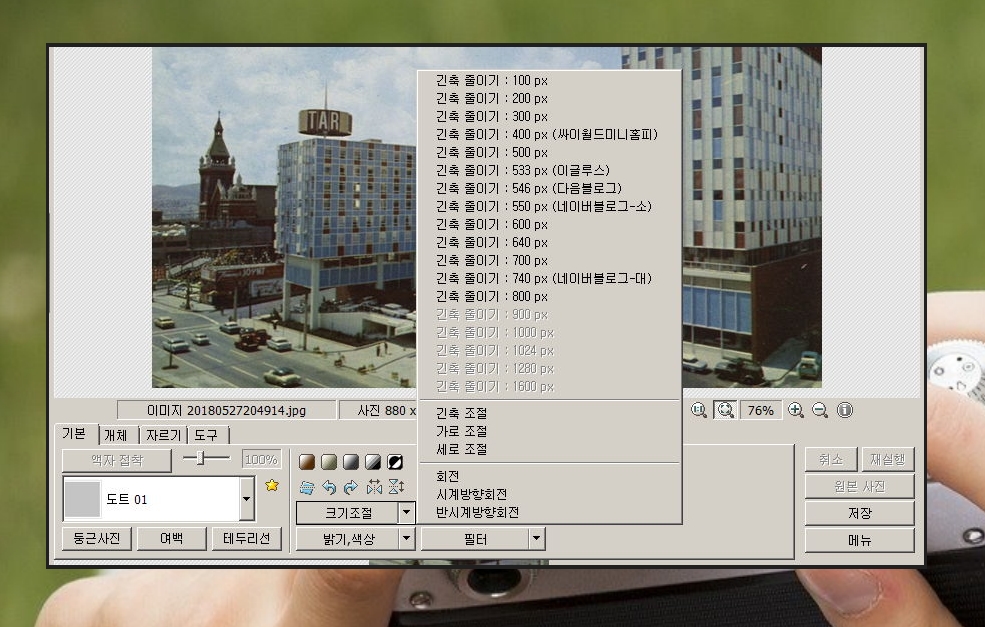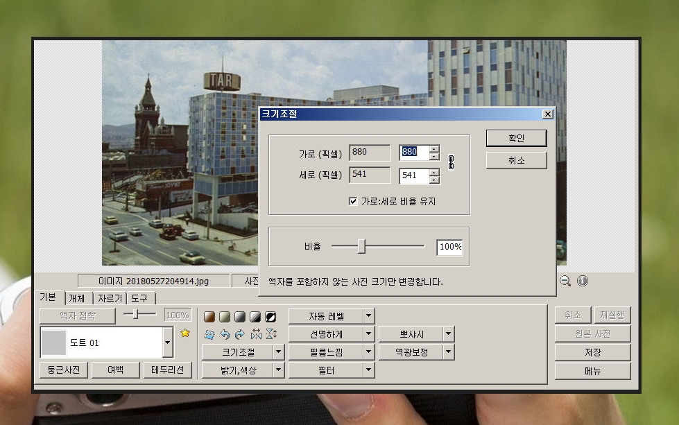 이 상태에서 포토스케이프 우측에 있는 크기조절을 설정해 주세요.