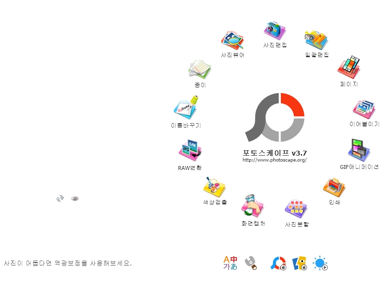 동그란 메뉴 리스트를 보시면 사진편집과 일괄편집이 있습니다.