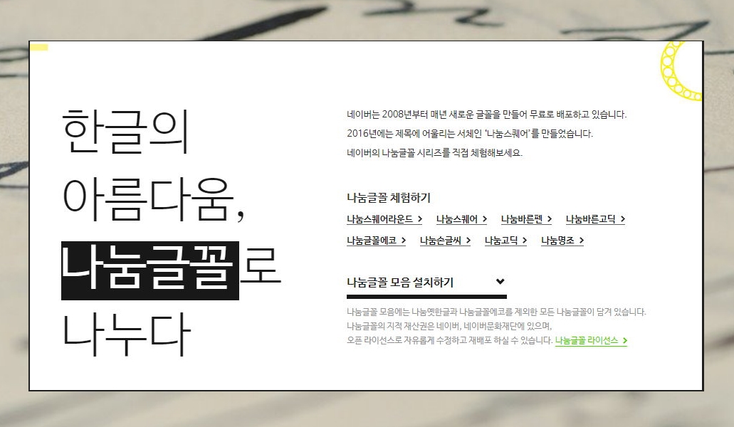 네이버에서 운영하는 곳으로 다양한 글꼴과 한글 문서 자료를 이용하거나 공모전 정보를 얻을 수 있습니다.