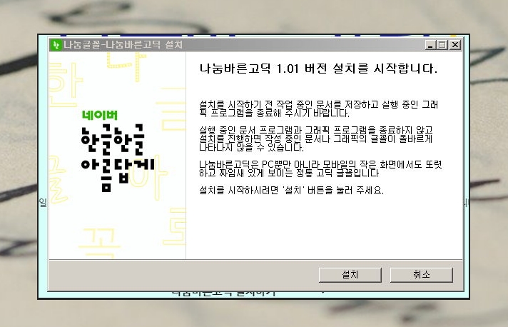 ▲ 나눔바른고딕 설치하기 버튼을 클릭해 주세요.