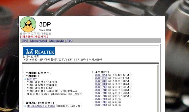 최신버전 리얼텍 사운드 드라이버 외에 여러 가지 버전과 유틸리티를 내려 받을 수 있습니다.