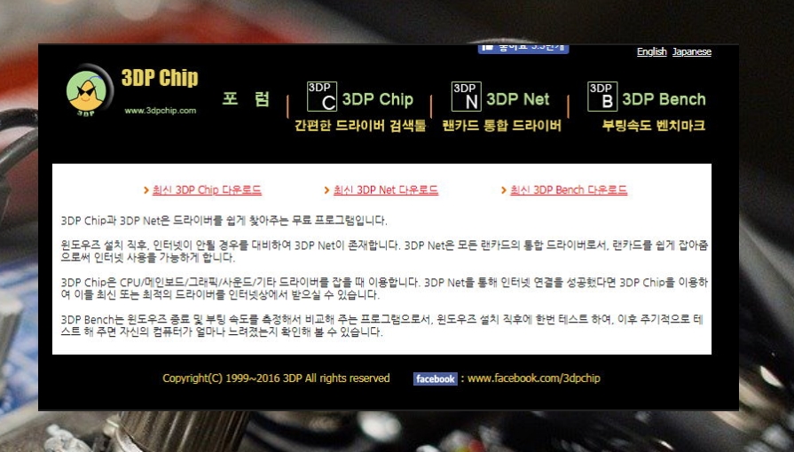 이제는 그럴 필요 없이 3dp chip 프로그램을 통해 cpu, 그래픽, 사운드, 랜카드 등의 하드웨어를 확인하고, 이에 맞는 드라이버를 바로 내려 받을 수 있어요. 사이트에 접속해서 알려 드리겠습니다.