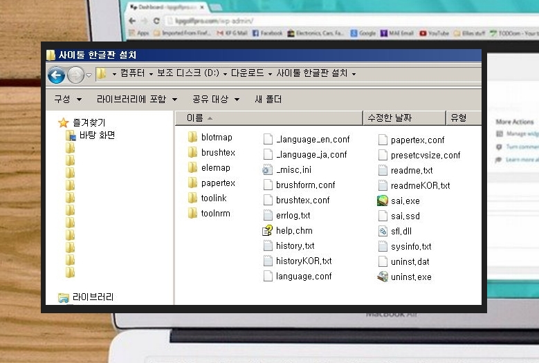 ▲ 압축을 풀면 다양한 파일이 나타납니다. 여기서 sai.exe를 더블 클릭하면 한글판 사이툴을 실행할 수 있어요.
