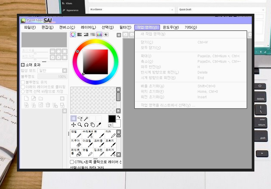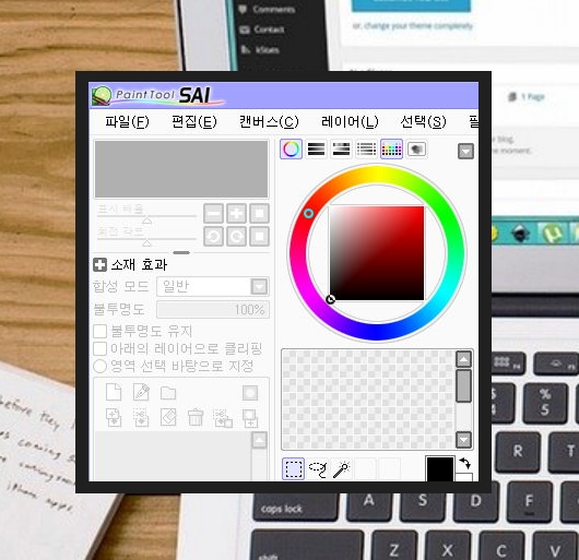 ▲ 사이툴을 실행한 결과입니다. 메뉴를 보면 캔버스, 레이어, 윈도우 등 다양한 기능이 많습니다. 사이툴의 경우에는 연필, 수체화, 붓, 마커, 지우개, 아크릴, 크레용 등의 다양한 도구를 이용할 수 있어요.