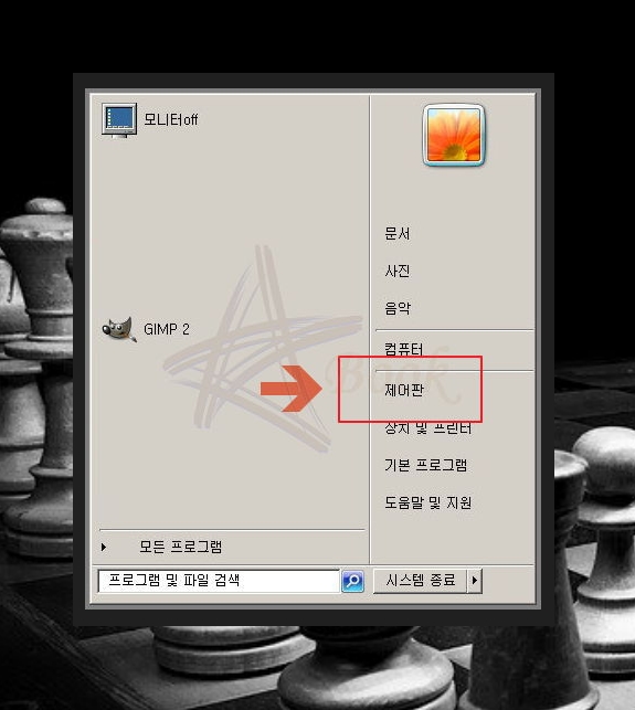 1. 윈도우 시작 버튼을 누른 후 프로그램 목록에 있는 제어판 실행을 합니다.
