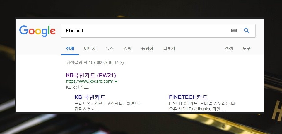 인터넷 주소창에 kbcard 닷컴을 영어로 입력하면 좀 더 빠르게 접속할 수 있습니다.