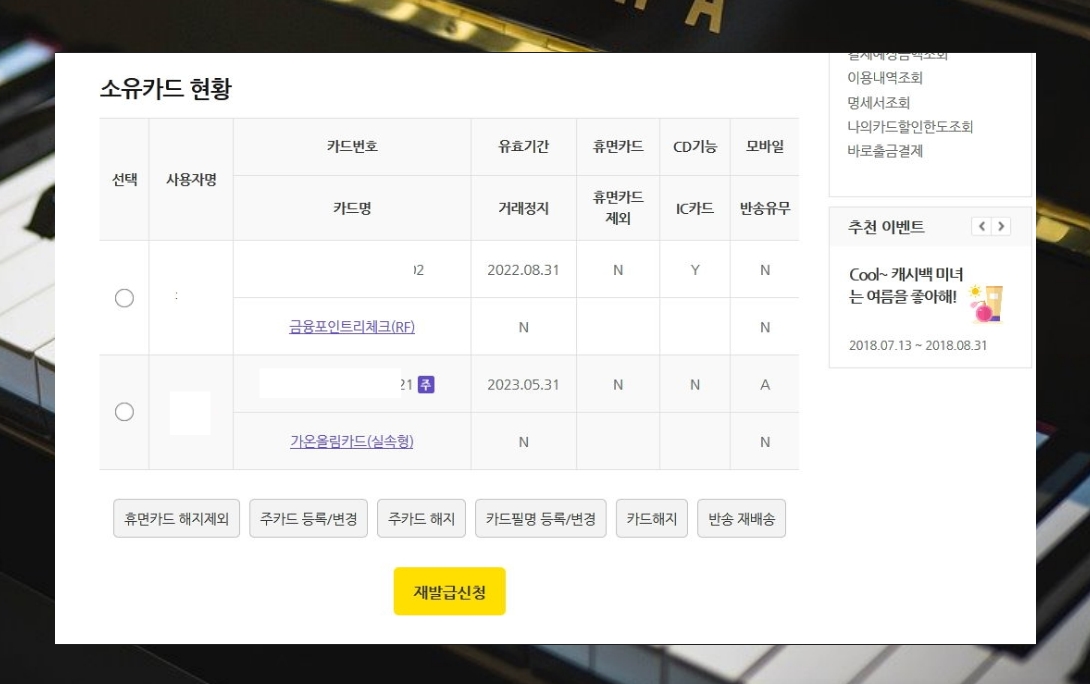 ▲ 현재 본인이 소유하고 있는 카드에 대한 내용이 나타납니다.