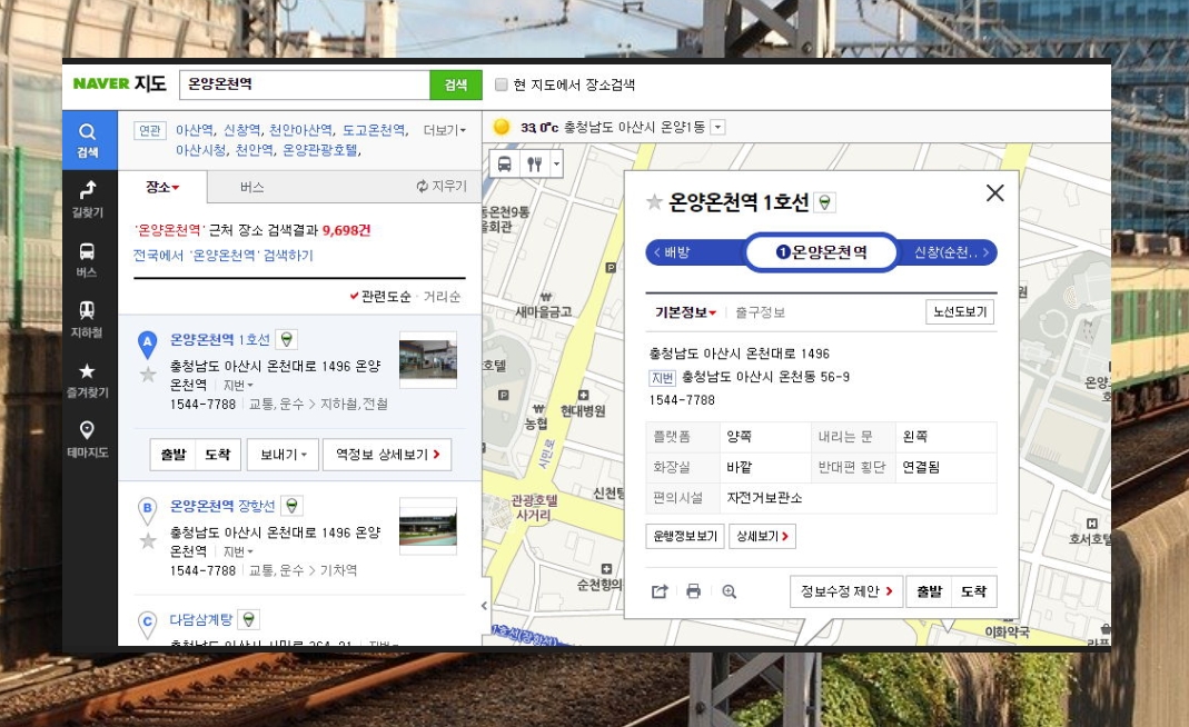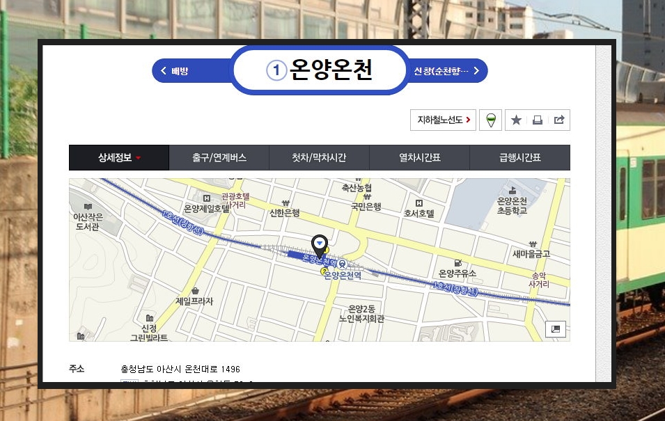 검색창에 온양온천역을 입력하고 엔터키를 누릅니다.