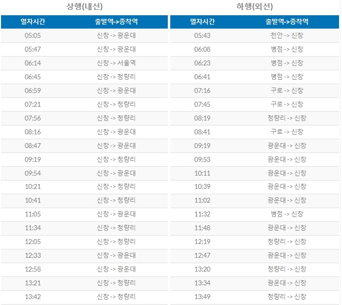 청량리행을 따로 보면 20시 50분까지 운행한다는 것을 알 수 있습니다.