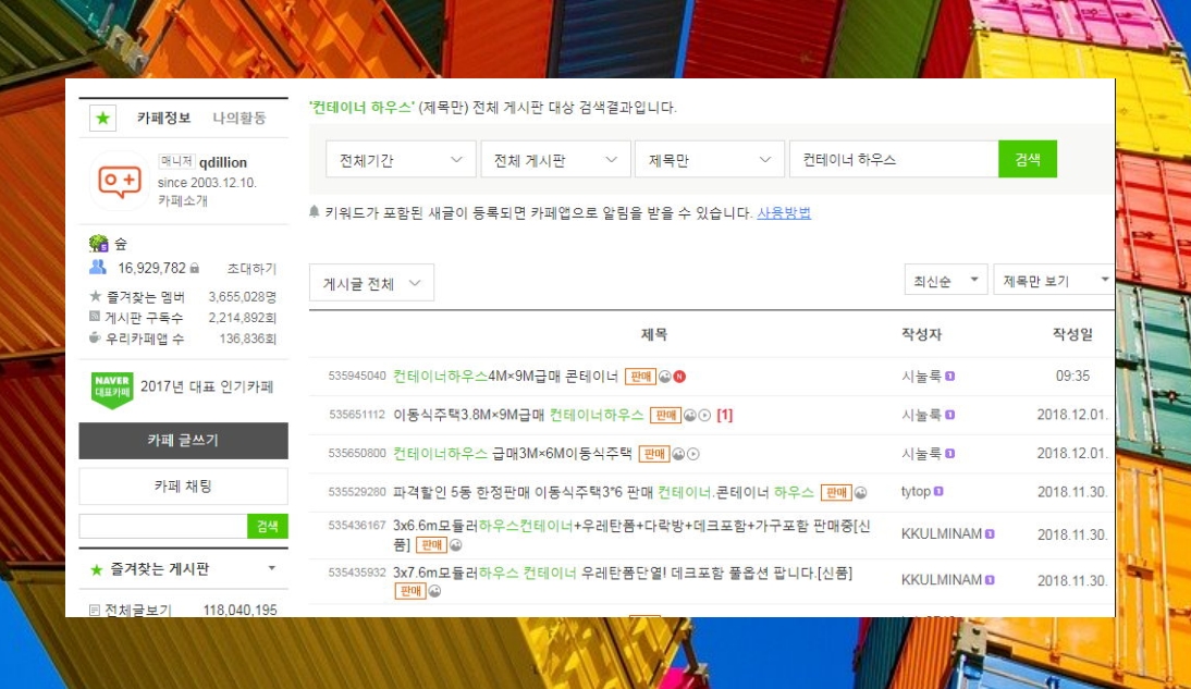 다아라 기계장터에 나온 중고 매물이 적다 생각하시면, 또 다른 방법을 알려드리겠습니다. 바로 중고나라인데요. 컨테이너 하우스라고 검색하면 하루에도 몇 개씩 올라오눈 매물을 만나보실 수 있습니다. 올리는 사람에 따라 다르지만, 대부분 상세한 정보와 함께 가격을 제시하기 때문에 가격비교에 도움이 됩니다.