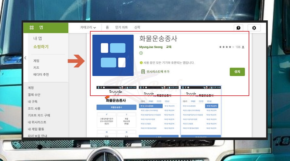 버스나 지하철 또는 카페에 있을 때에도 화물운송 시험을 준비할 수 있어요. 스마트폰 어플을 이용하면 되는데요. 구글 플레이스토어에서 화물운송종사를 검색해 보세요. 그럼 기출문제를 풀 수 있는 어플을 찾을 수 있을 거에요.