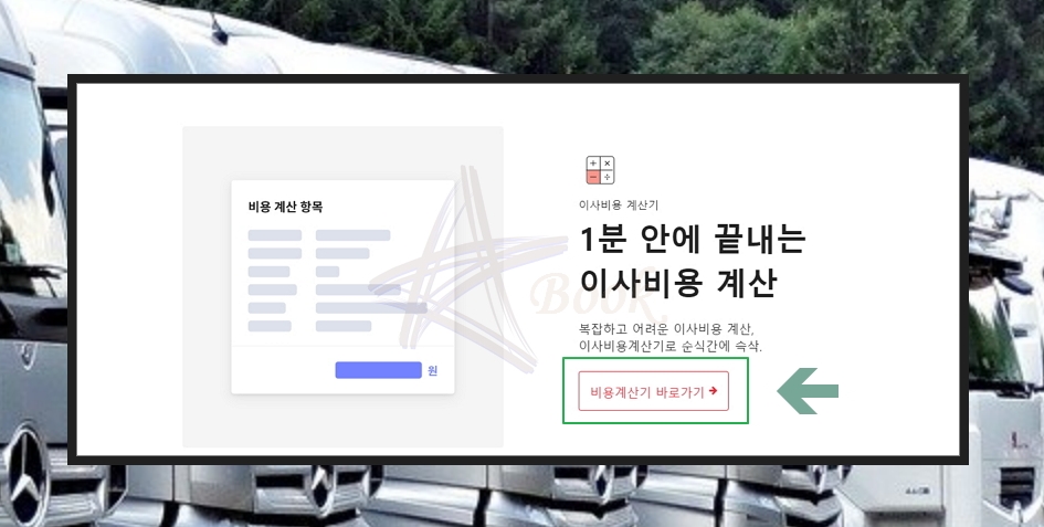 1분 안에 끝내는 계산 프로그램이 나타났어요. 1톤트럭은 물론이고, 5톤 차량을 이용할 때에도 사용할 수 있어요. 바로가기 버튼을 클릭해 볼게요.