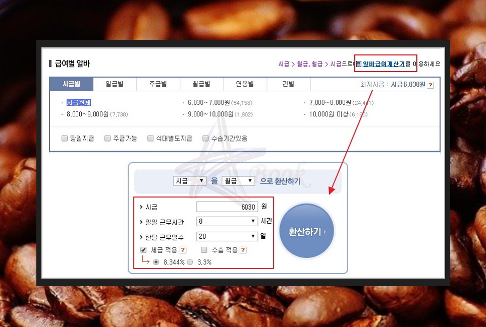 알바급여계산기 클릭