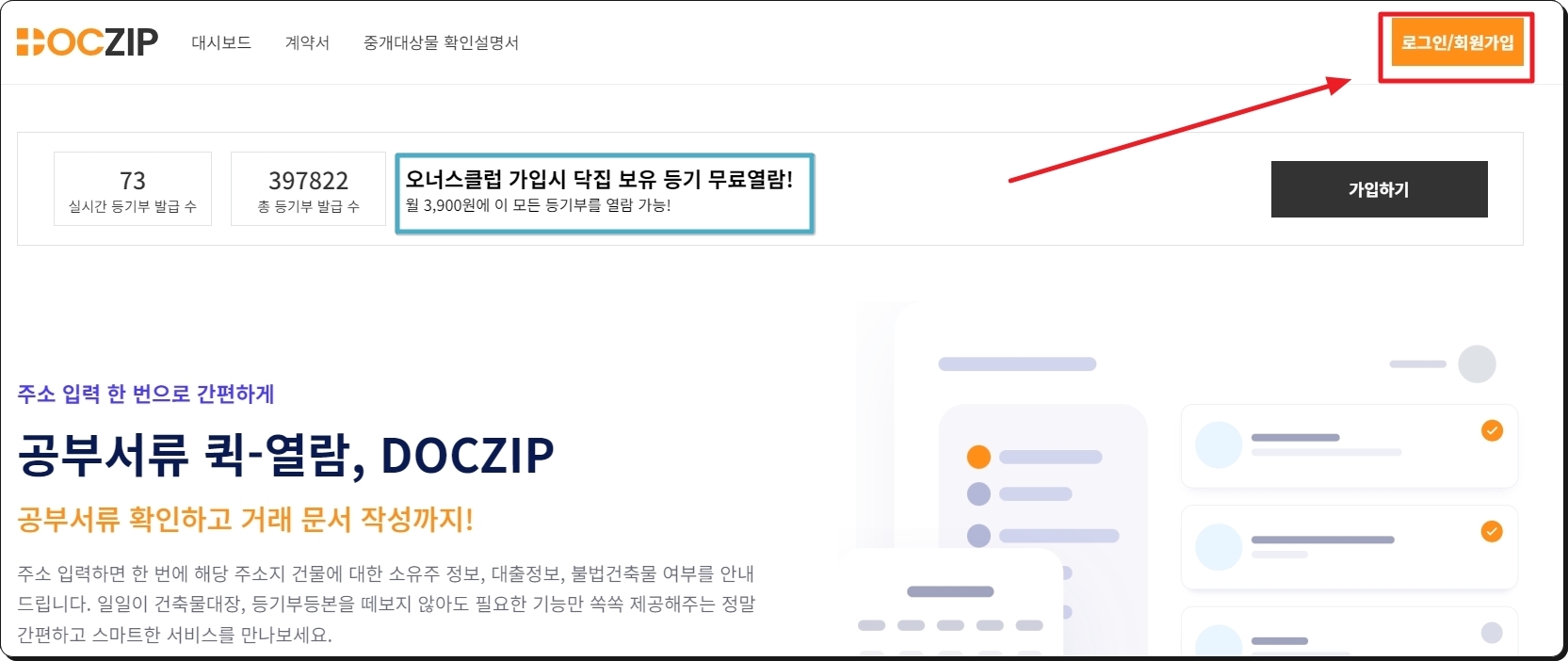 이곳의 "등기 무료열람 서비스"를 이용하려면 로그인을 해야 하는데요. 부동산에 관련된 일을 하시는 분들이라면 자주 등기부등본 서류를 확인하실텐데요. 이곳의 오너스클럽을 활용하면 유익하겠네요. 이 부분은 참고해 주세요.