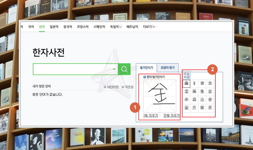 여러 가지 한자 사전찾기 방법 따라하기.