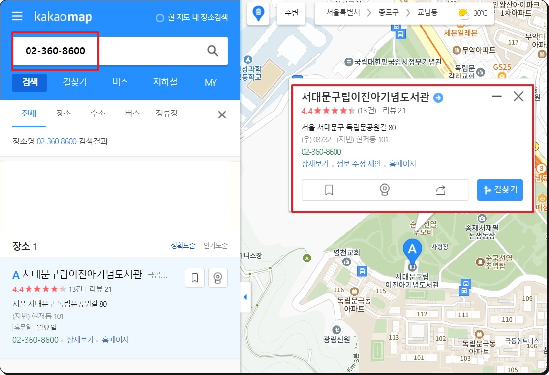 방금 제가 검색한 곳에 대한 정보가 나왔네요. 이런 식으로 해당 전화번호의 주체에 대한 여러 가지 정보가 나타납니다. 상세한 주소와 함께 지도 화면이 나오는 것이 인상적인데요. 이런 식으로 쉽게 검색할 수 있습니다. 화면 오른편에 보면 묻고답하기 서비스가 있는데요. 검색을 해도 정보가 나오지 않는 경우에 사용하면 좋습니다.