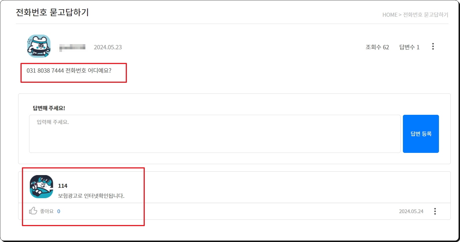 이런 식으로 모르는 전화번호에 대한 질문을 하면 답변을 받아볼 수 있습니다.