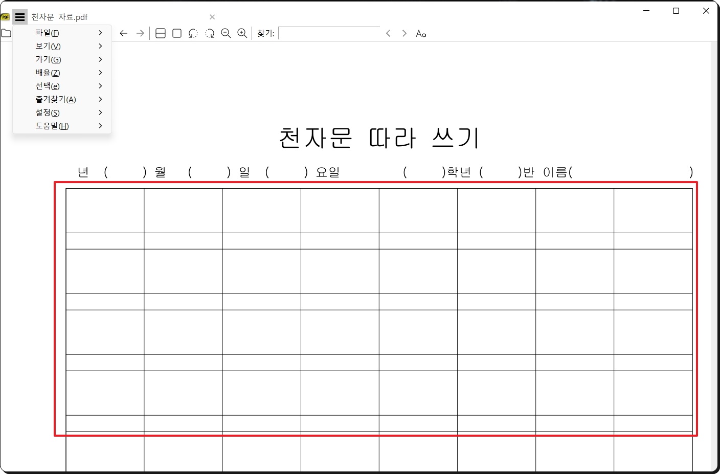 천자문 한자교본 및 학습 자료 이용하기.