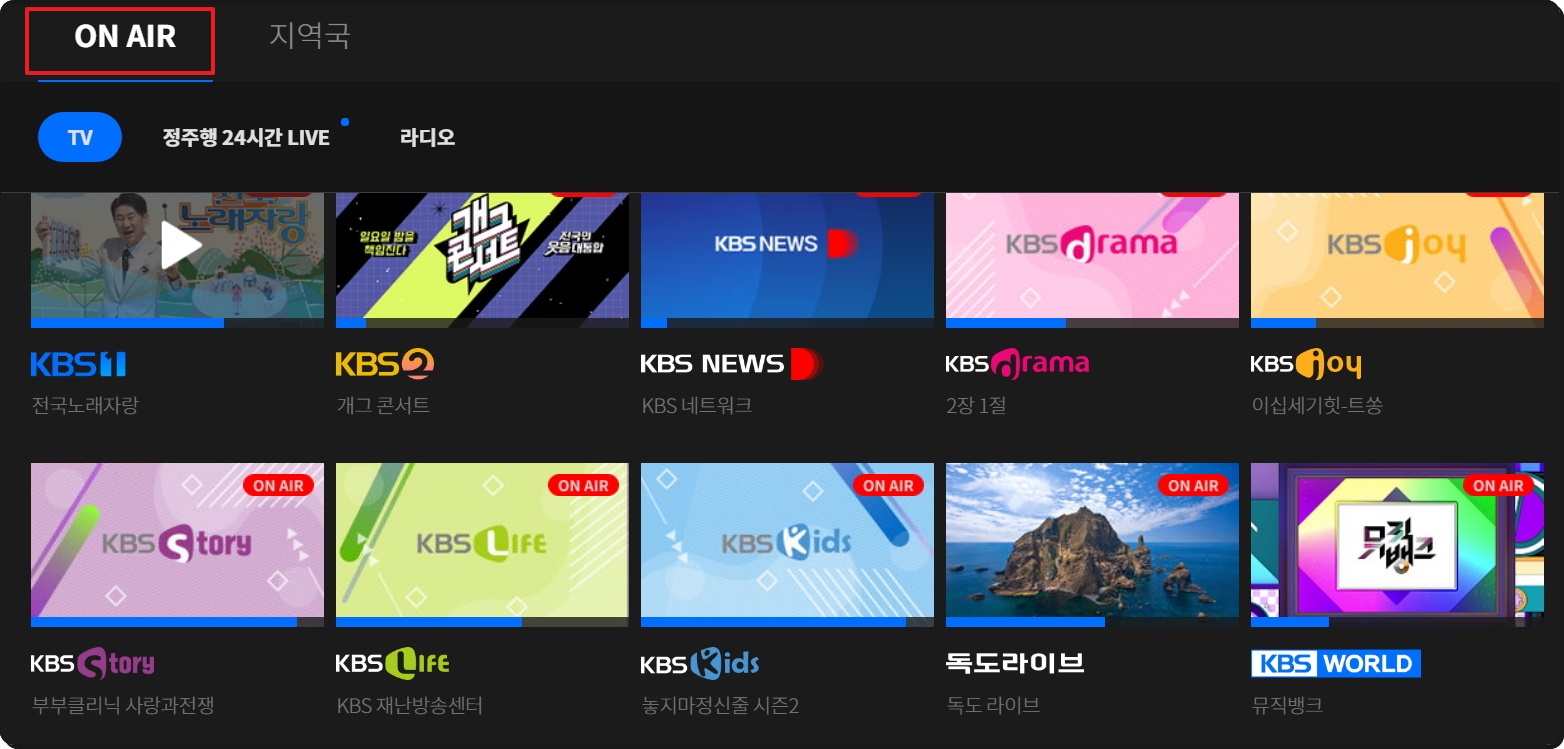 요즘에는 라디오 방송도 인터넷으로 들을 수 있는데요. 실시간 감상이 가능한 온에어 서비스가 여덟 개나 되네요. 라디오를 좋아하는 분이라면 KBS1 채널과 함께 이용해 보세요.