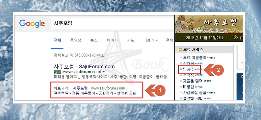 1) '사주포럼' 접속 ▷ '당사주' 클릭