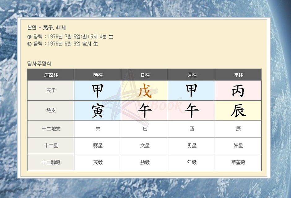 3) 무료풀이 결과1 - 당사주명식 확인