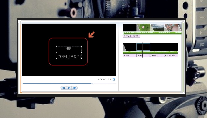 우리도 한편의 영화를 만든 것이니 엔딩 크레딧이 올라가는 장면이 있으면 좋겠지요. 방법은 변경하고 싶은 이미지를 누르시고 좌측 검은 화면에 마우스 왼쪽 버튼 누르시면 되는데요. 내용을 직접 입력해 보세요.