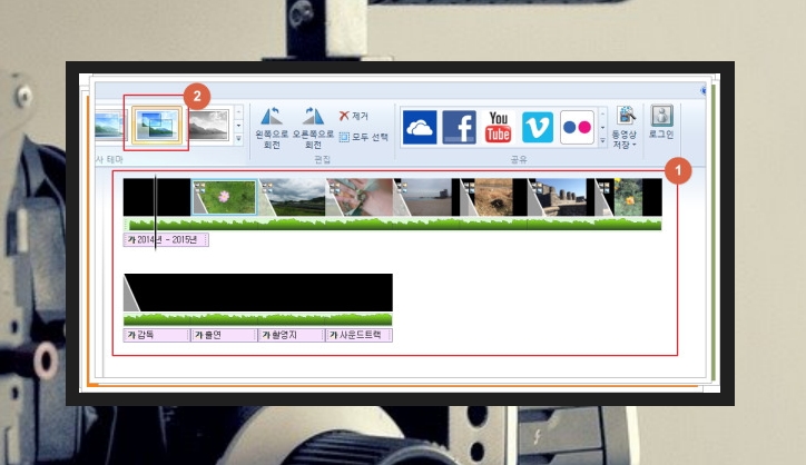 [TIP] 하나하나 넣는것도 좋지만 저는 ②번에 있는 동영상 테마의 [이동 및 확대/축소]만 사용합니다. 편집을 직접해보시면 아시겠지만 일일이 애니메이션을 넣는것은 시간을 많이 잡아 먹습니다. 하지만 이것은 버튼 한번만 누르면 모두 적용되고, 제가 직접한 것보다 이쁘게 나옵니다. (매 사진별로 다양하게 바뀌니 한번 사용해보세요.)