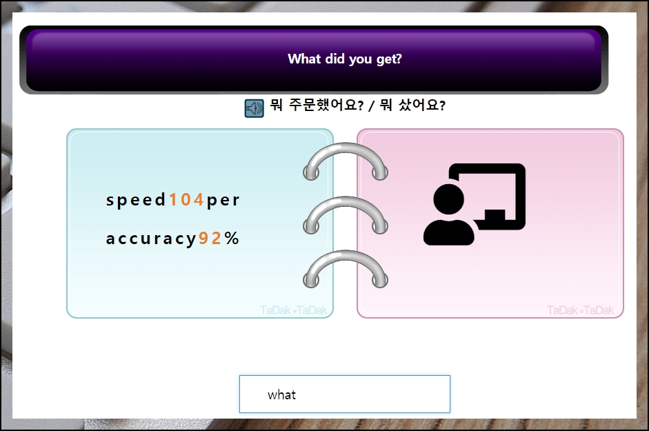 영어 단어를 가지고 타자 연습을 진행하는 것도 가능한데요. 이렇게 속도와 정확도를 알려주기 때문에 자신의 실력이 어느 정도 되는지 객관적으로 파악할 수 있습니다. 영어 단어에 관련된 그림도 나와서 심심함이 덜하기도 하고요.