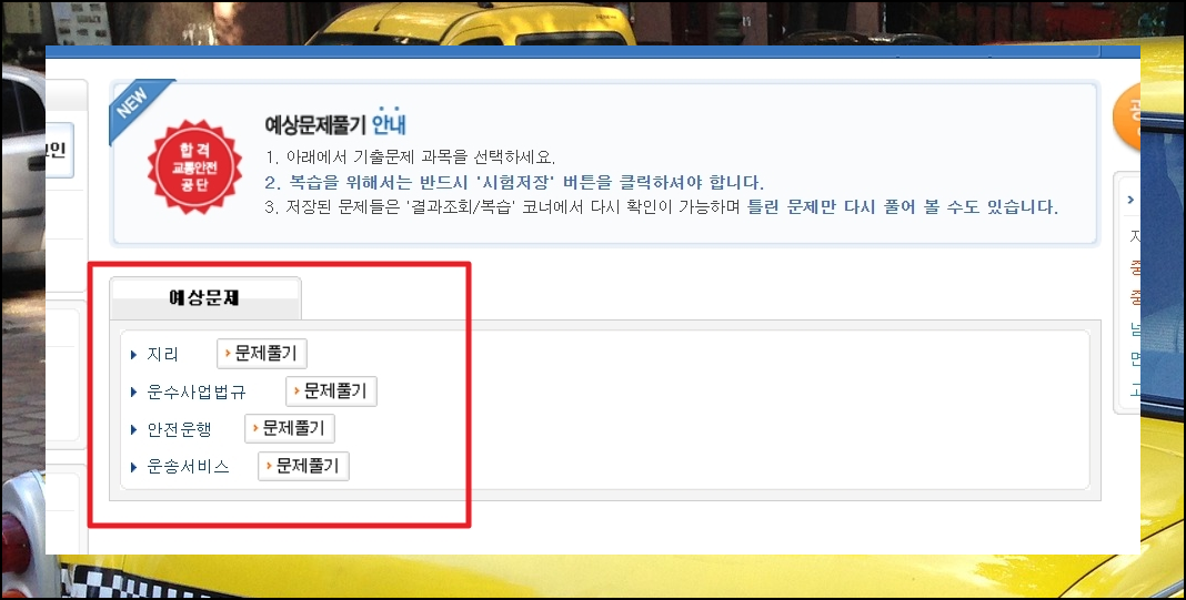 택시운전 자격시험 기출문제 및 수험자료 무료로 이용하기.