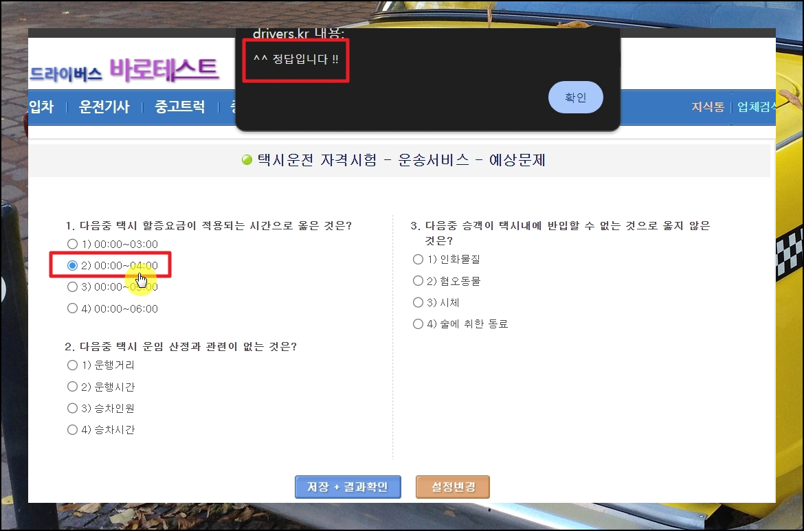 무료 운전기사 구인구직 전문사이트인 "드라이버스"를 통해 택시운전 자격시험 기출문제를 풀어볼 수 있는데요. 당연히 무료로 풀어볼 수 있어요.