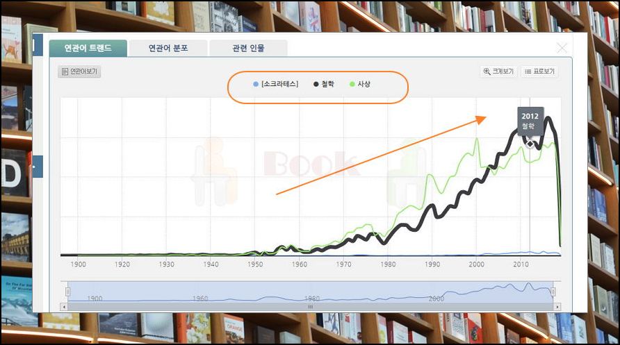 시대에 따라 관심을 갖는 부분이 달라질 수 있어요. 장소에 따라서도 달라지지요. 연관어 트랜드의 신뢰도가 높은 편이라면 최근까지 철학에 대한 관심이 지속적으로 늘어나고 있다고 판단할 수 있겠네요.
