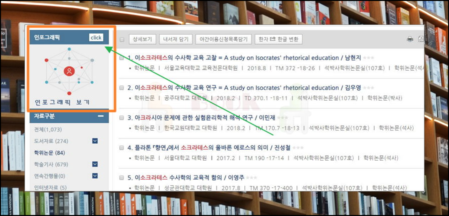 제가 국회도서관 논문검색을 하면서 인상 깊었던 부분은 인포그래픽 보기 기능이에요. 특정 주제에 대해 알고자 할 때 어떻게 해야 할지 모를 수 있어요. 이런 경우 어떤 키워드를 사용해야 할지 몰라서 검색을 하기도 어려운데요. 이때 인포그래픽 기능이 유용해요.