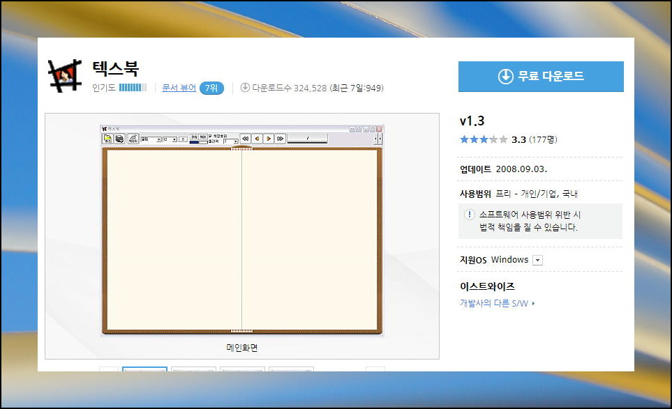 지금까지 소설보는 프로그램 중에서 빠르고 편리한 것 위주로 알려드렸는데요. 해당 프로그램들은 모두 네이버 소프트웨어 사이트에서 무료로 받을 수 있습니다. 사용범위에 프리라고 적혀 있는 것은 프리웨어를 뜻한 답니다. 사용하는 데에 제약이 없다는 것이죠. 그럼 재미있는 소설 많이 보세요.