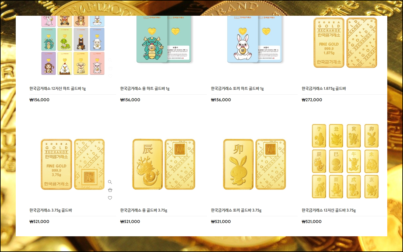 거래소를 통해 골드바 구입이 가능해요. 보시면 아시겠지만, 오늘의 금시세와 비교했을 때 가격이 비싼 편이에요. 판매가 가능하도록 가공이 되어 있기 때문에 그런 것 같아요. 여기서 골드바 1돈을 구입할 수 있어요. 매해 그해를 상징하는 동물이 새겨진 골드바가 출시되고 있어요. 여유가 있다면 가치가 쉽게 훼손되지 않는 골드바를 모으는 것도 좋을 것 같아요.