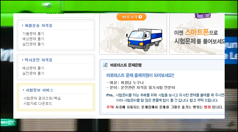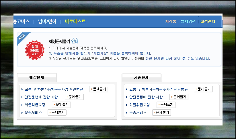 드라이버스 사이트는 운수업 종사자를 위한 종합 플랫폼입니다. 로그인 없이 무료로 기출문제집을 풀 수 있으니 바로테스트 메뉴를 이용해보세요.