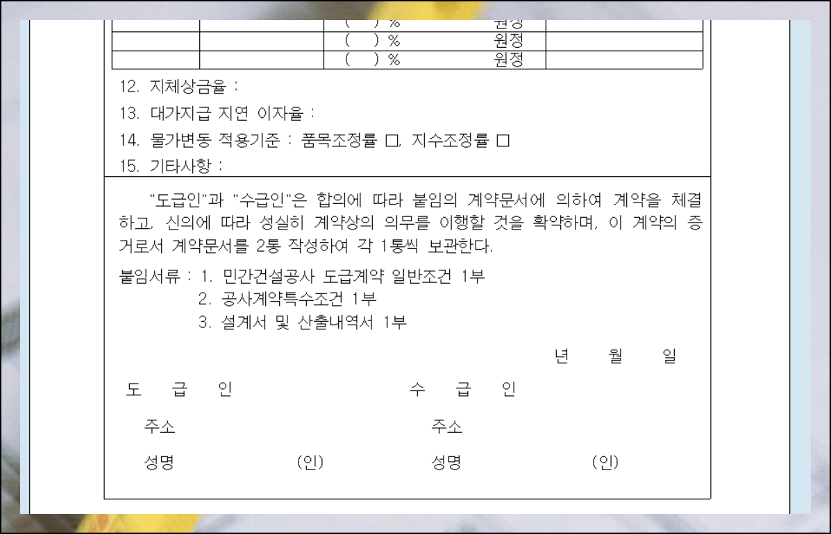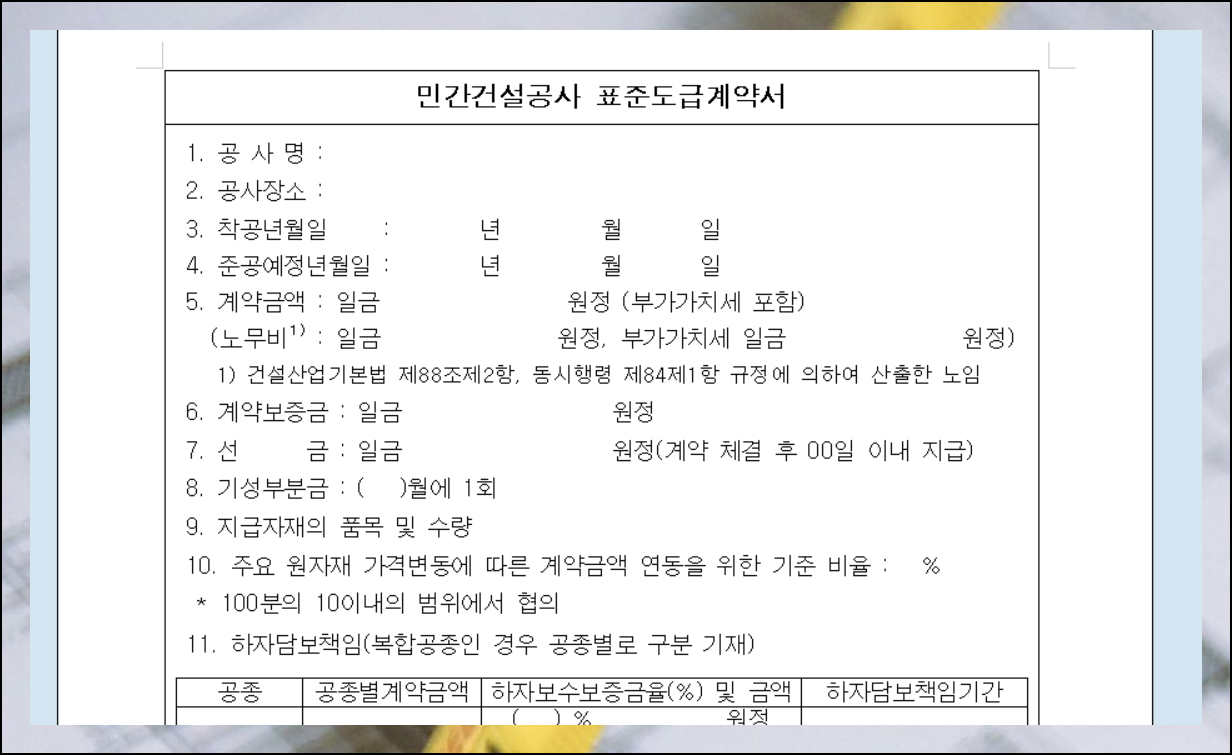 건설 계약을 처음 접하시는 분들은 어떤 내용을 담아야 할지 고민이 많으실 거예요. 이럴 때 민간건설공사 표준도급계약서 양식을 활용하면 실수 없이 계약서를 작성할 수 있습니다.