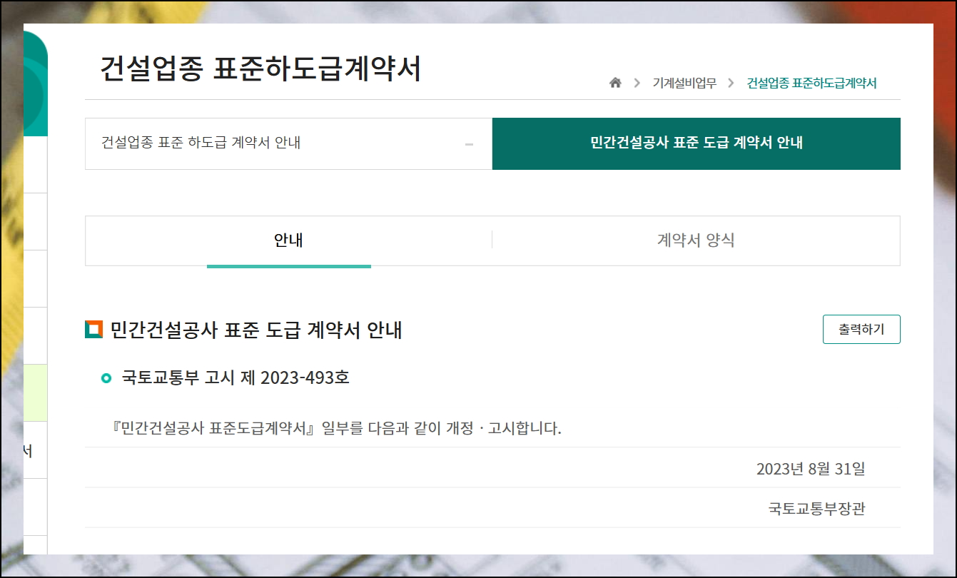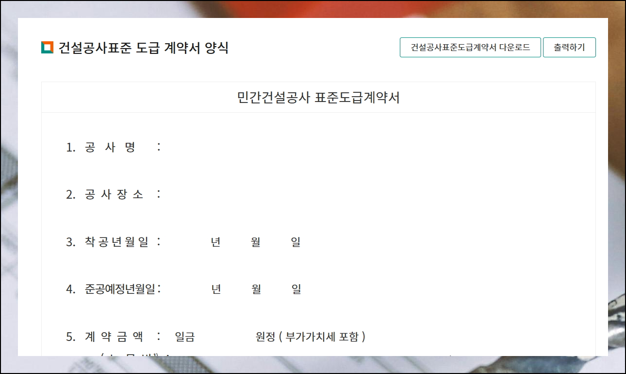 민간건설공사 표준도급계약서 양식 무료 다운로드 방법