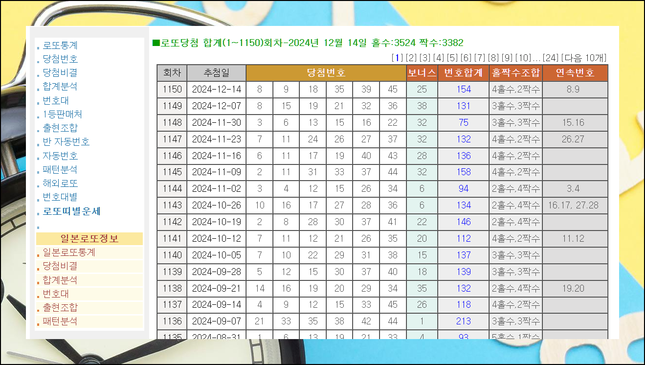 당첨 비결 서비스에서는 지난 로또 당첨번호를 한눈에 볼 수 있어요. 숫자의 합계부터 홀짝 패턴까지, 당첨 확률을 높이는 데 도움이 되는 정보를 쉽게 확인할 수 있습니다.